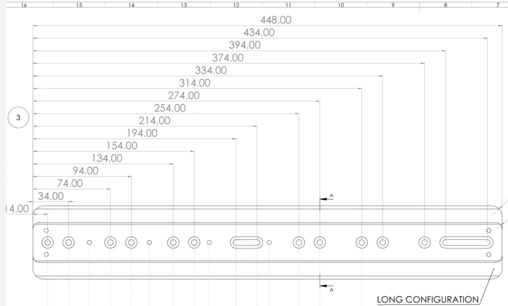 Rail has TWO slotted sections to allow for most existing chassis/ stock holes.