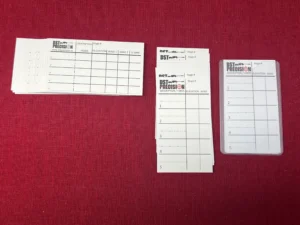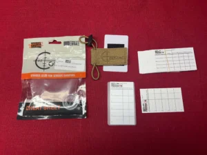 Double sided single use DOPE cards. Use pen, pencil, marker or blood, anything you really want. First side is designed to hold 5/10 lines of stages of yardages, descriptions, elevation and wind. Second side is designed to hold 5 lines of description, yardages, elevation and THREE wind columns.