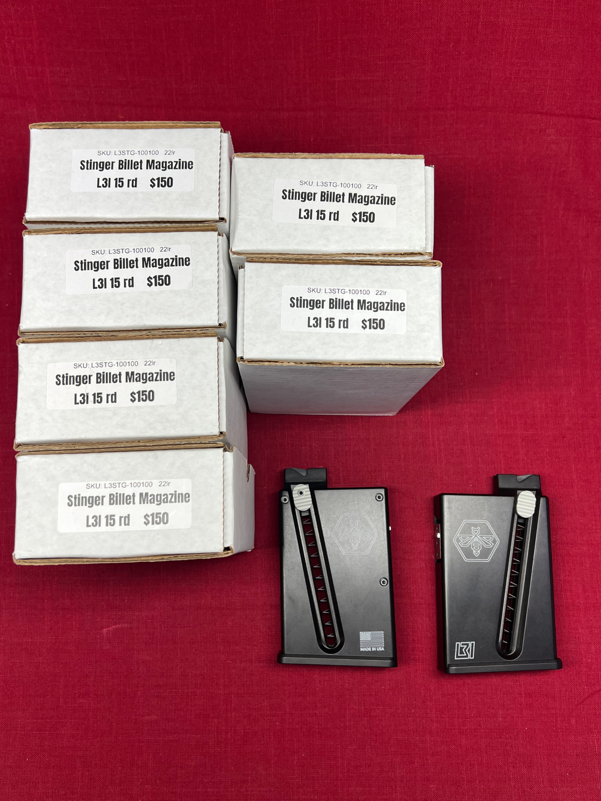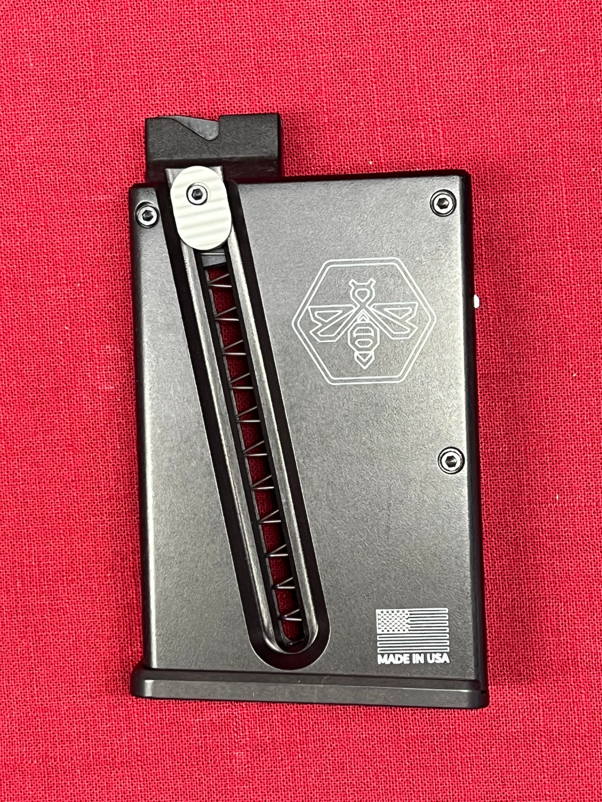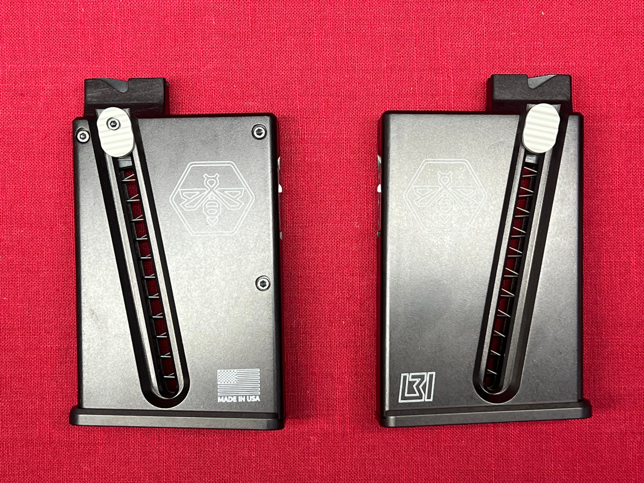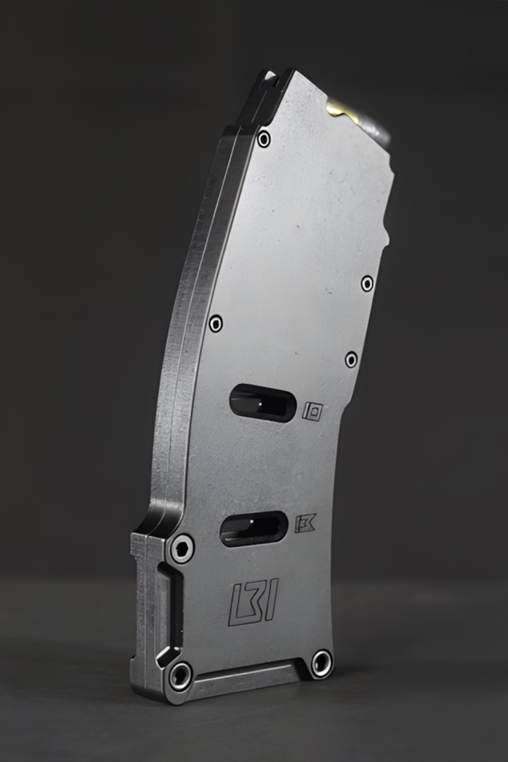 Precision-machined from 7075-T6 aluminum with a multi-adjustable stainless steel latch for a custom fit. Designed for the Stinger action, but compatible with most 40X .22LR clones. Weighs 16 oz to simulate loaded centerfire mags—perfect for serious rimfire training.